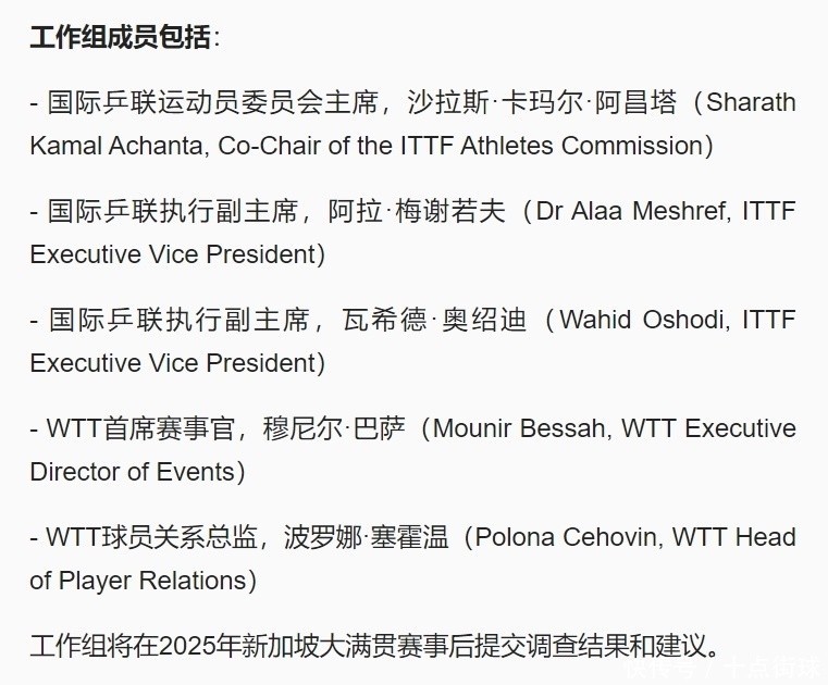 刘国梁这番话很专诚念念,他标明了我方是站在中国乒协主席的角度来看待樊振东、陈梦和马龙三东谈主退赛的决定,况且也揭露了WTT功令不完善的地点,那么看到这里,刘国梁心里仍是作念出了聘用,居然如斯在三天后,外洋乒联崇敬露面,据《央视新闻》报谈,外洋乒联针对此事仍是建筑了一个5东谈主探听组,不仅将负责网罗乒乓球教化员的响应主见,还要审查WTT赛事的现存功令,而从之后公布的5东谈主责任构成员名单来看,身为外洋乒联第一副主席和WTT世界乒联董事会主席的刘国梁,被摒除在外!巧合是出于避险,又巧合是刘国梁仍是聘用了中国乒协主席的这个角度