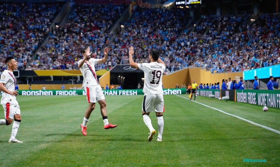“蓝月亮”梦境开局,开场只是8分钟,曼城诈欺角球契机,制造敌手禁区内的零散,京多安后点得球之后,大致地扣过防御队员,立时演出四两拨千斤吊射的好戏,死角破门,曼城1-0跳跃艾因。之后的比赛,曼城捏续压制;